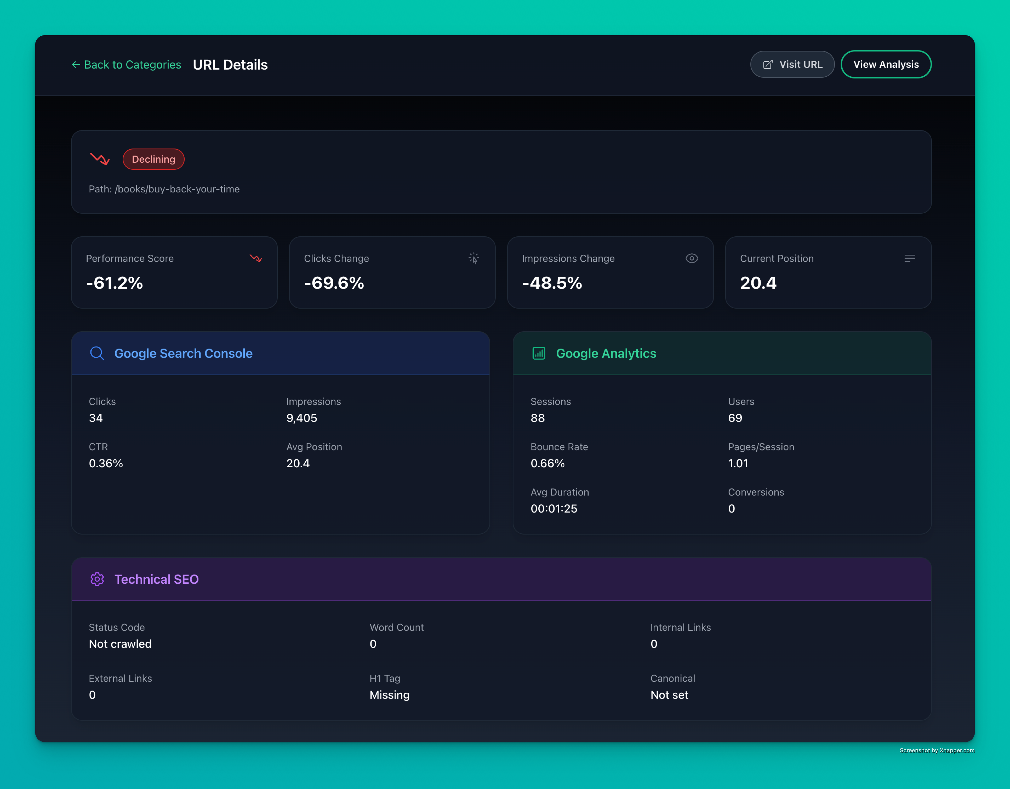 - A page marked “stable” might look fine at a glance, but digging deeper often shows it’s slowly declining on long-tail queries.